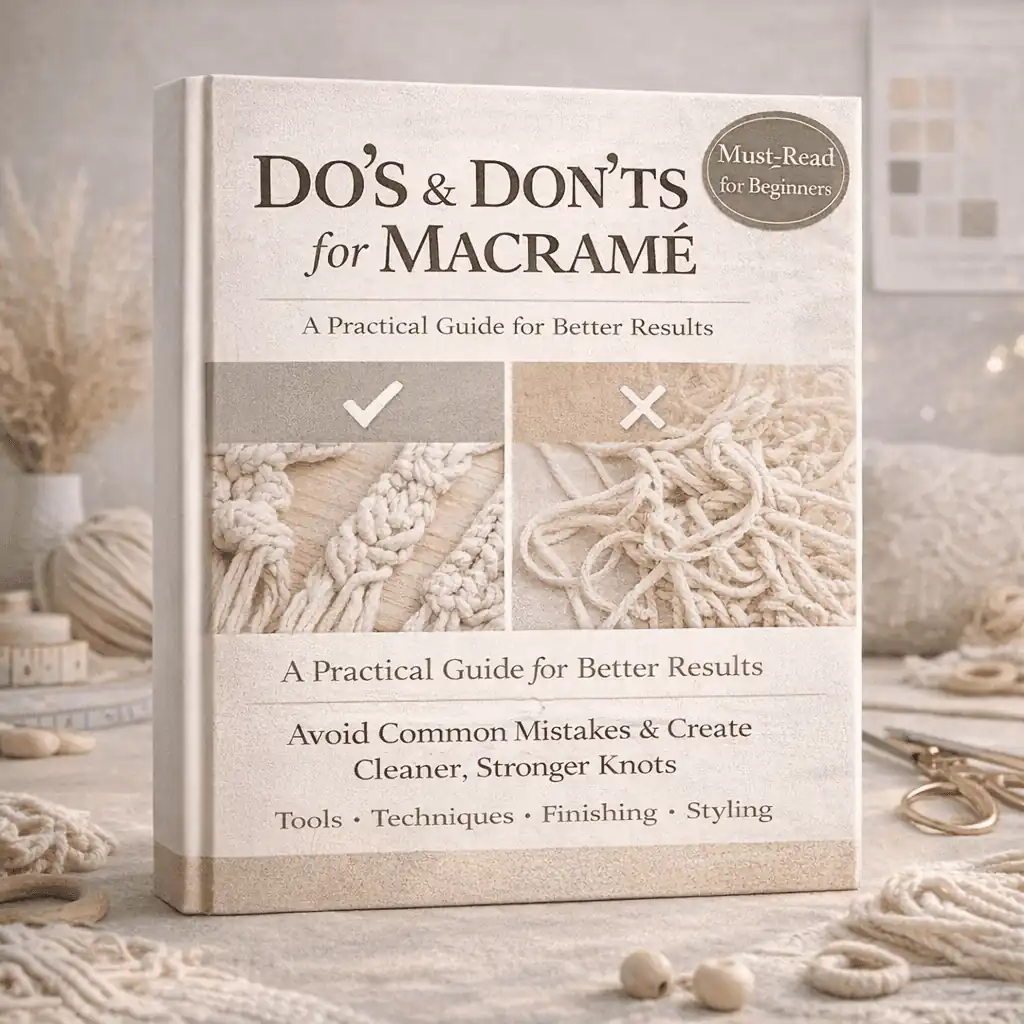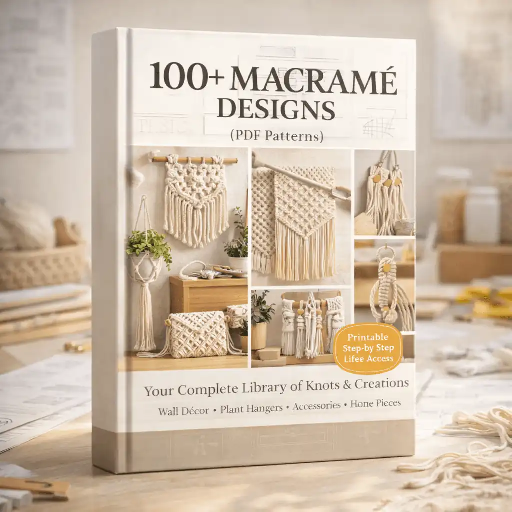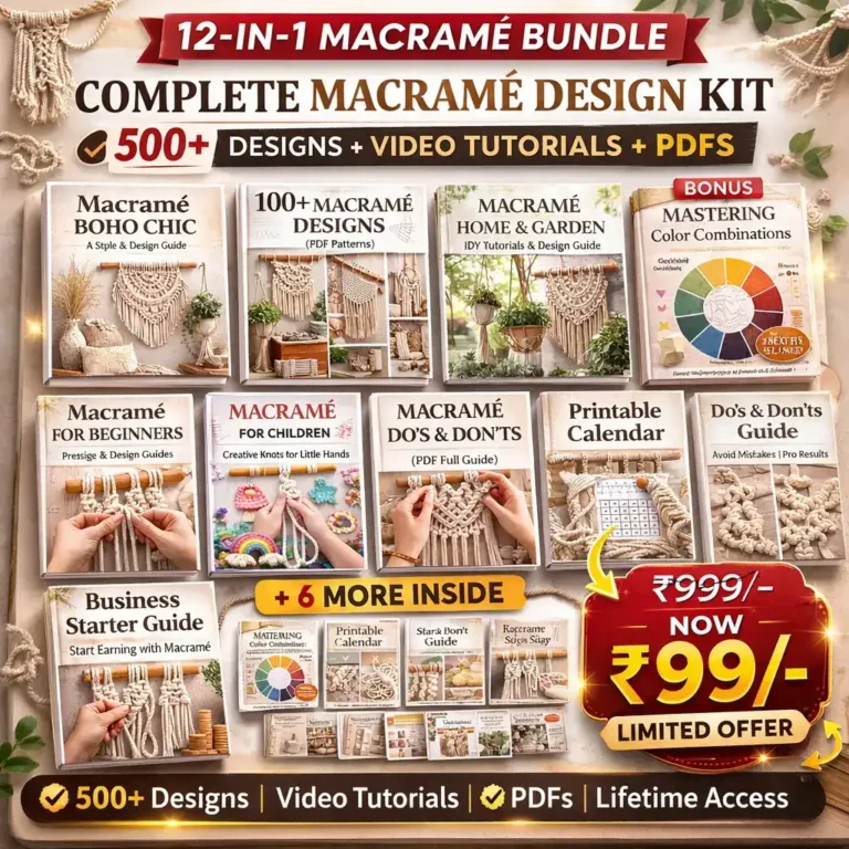 The bundle includes a comprehensive “Material Sourcing Guide to help you easily find the right macramé cords, beads, and other tools locally in India. Most items are readily available.