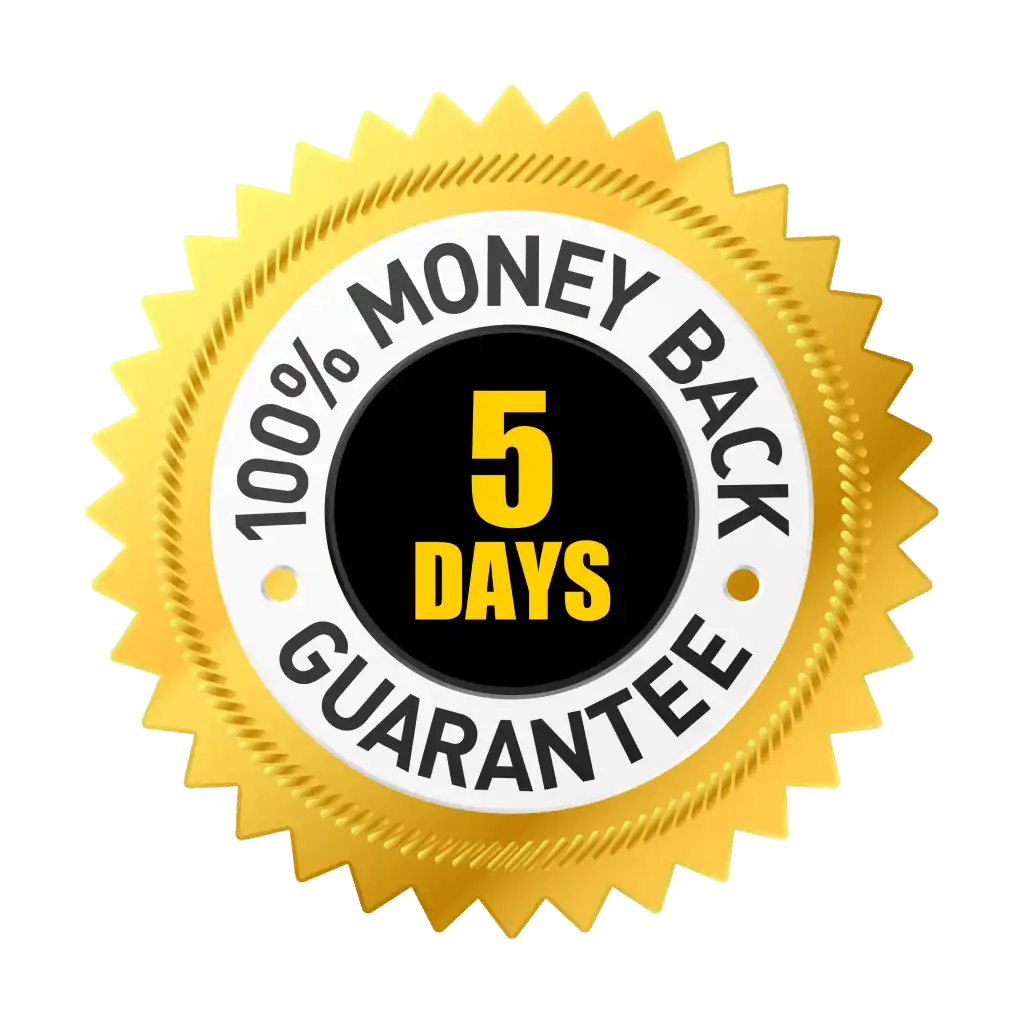 That’s why we give you a 5-Day, No-Questions-Asked, 100% Money-Back Guarantee.